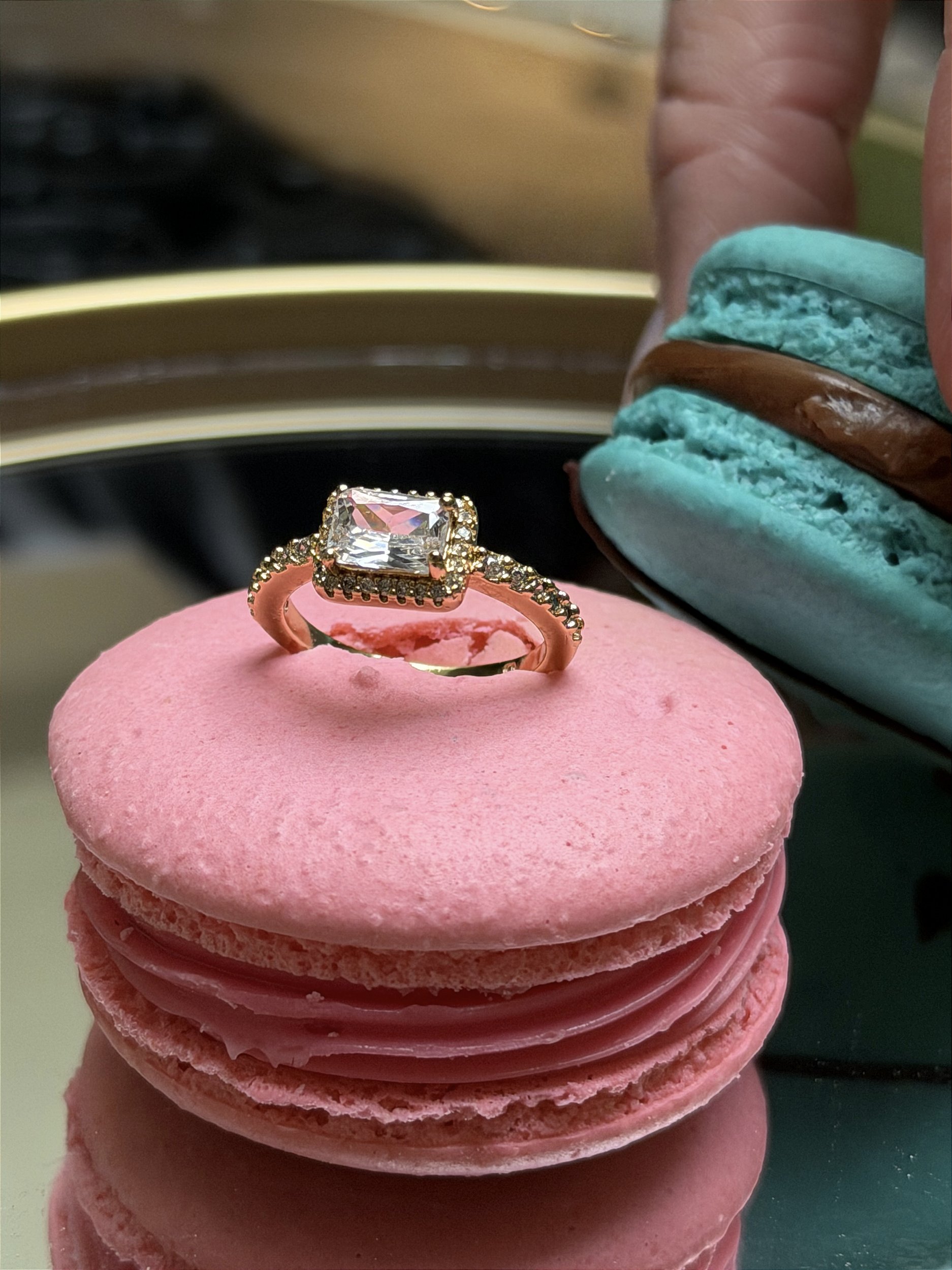 Anel Retângulo Cravejado Confeccionado em Banho de Ouro Amarelo 18k