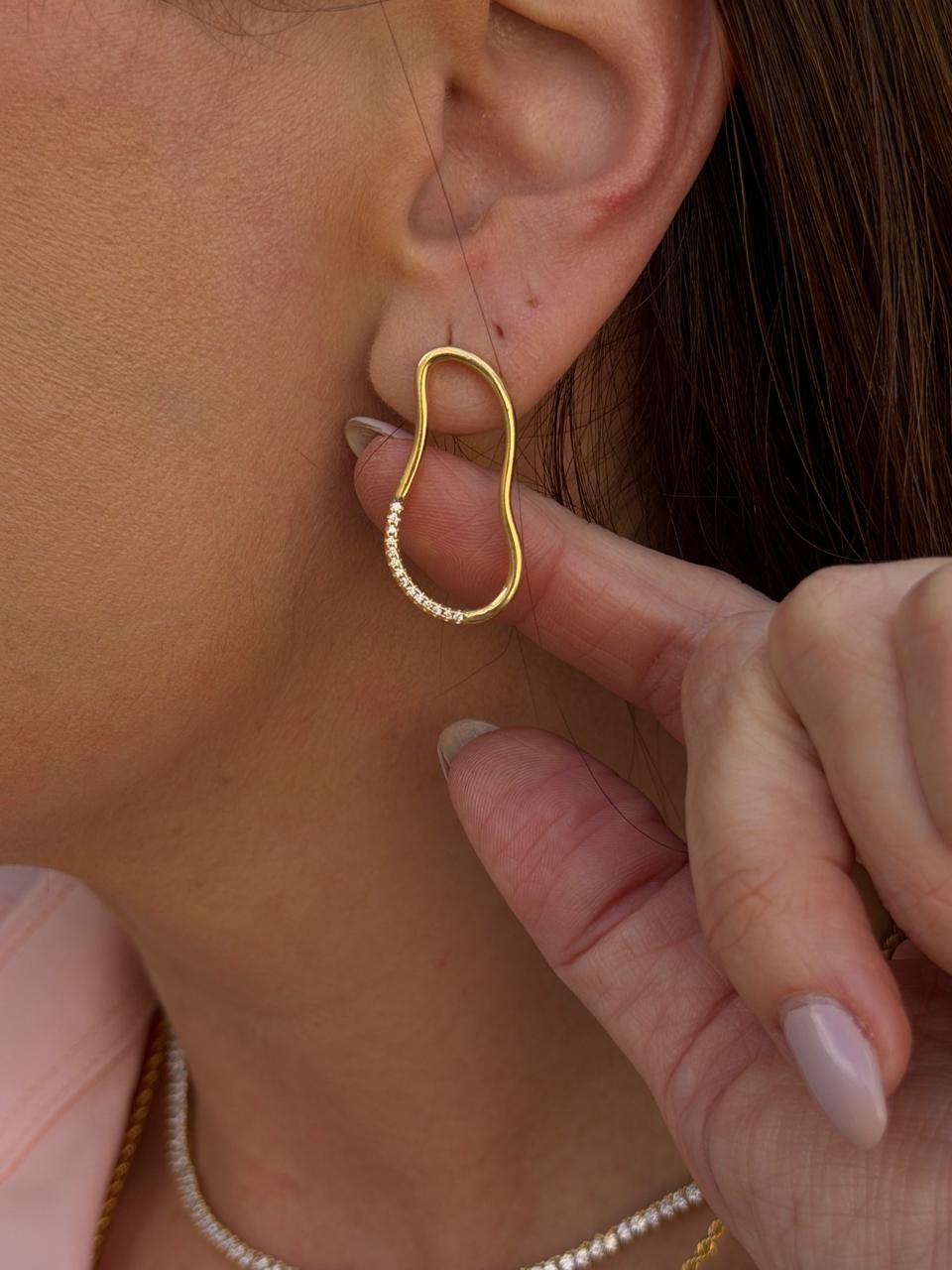 Brinco banhado a ouro 18K com design orgânico e detalhe texturizado, ideal para quem busca um visual moderno, sofisticado e cheio de personalidade.