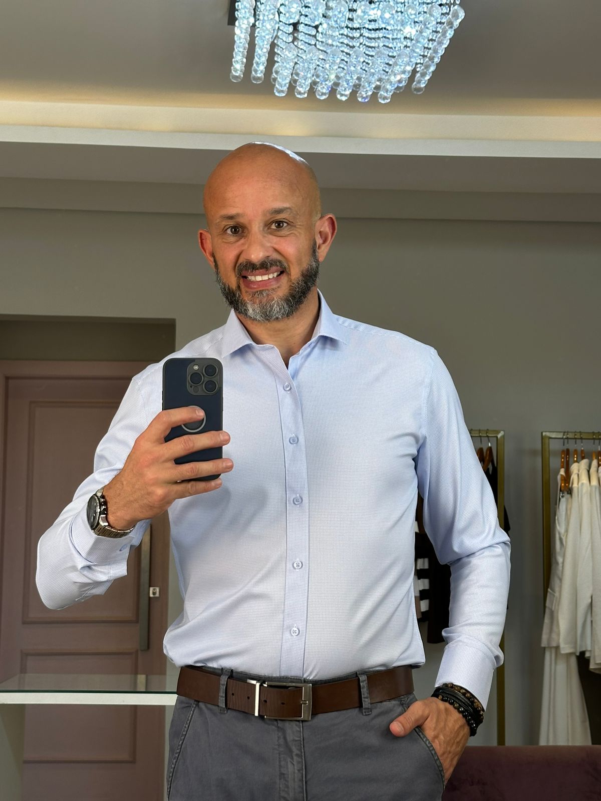 Camisa social masculina em Fibra Natural de Bambu com Elástano, modela-se ao corpo, é muito confortável, leve e com toque extremamente macio. Proporciona uma sensação térmica agradável e confortável, por ser um tecido de Fibra Natural. Passa fácil e não amassa, uma peça excelente para os dias mais quentes.