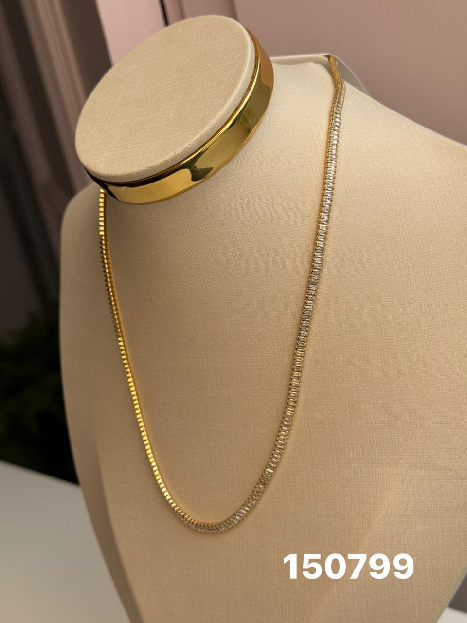 Chocker rivieira baguete dourado cristais