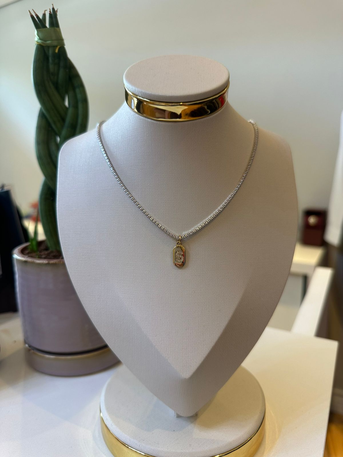 Semijoia Gazin - Choker Riviera Letra S Bicolor Confeccionado em Banho de Ouro Amarelo 18K e Ródio Branco.