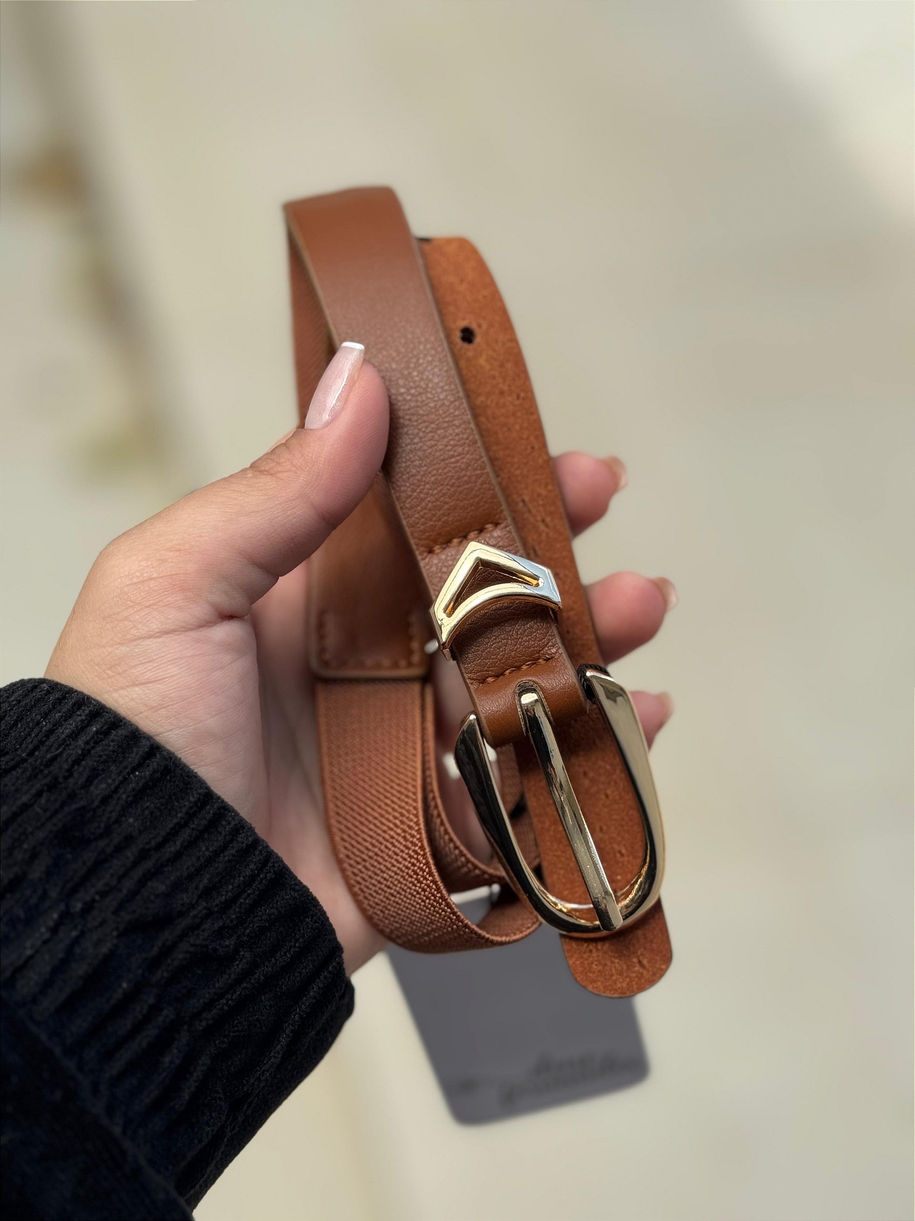 Moderno e versátil, este cinto combina corpo em elástico com pontas em couro, garantindo ajuste perfeito e conforto ao usar.