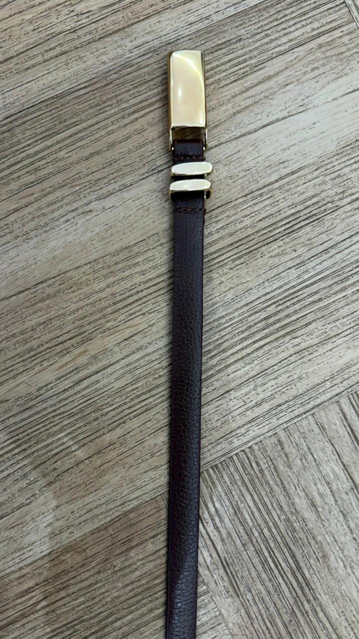 Cinto confeccionado em couro, com acabamento liso e sofisticado. Possui fivela metálica de design clássico, que agrega elegância ao visual e facilita o ajuste. Versátil e atemporal, é o acessório ideal para complementar produções casuais ou mais refinadas, valorizando a cintura e finalizando o look com estilo.
