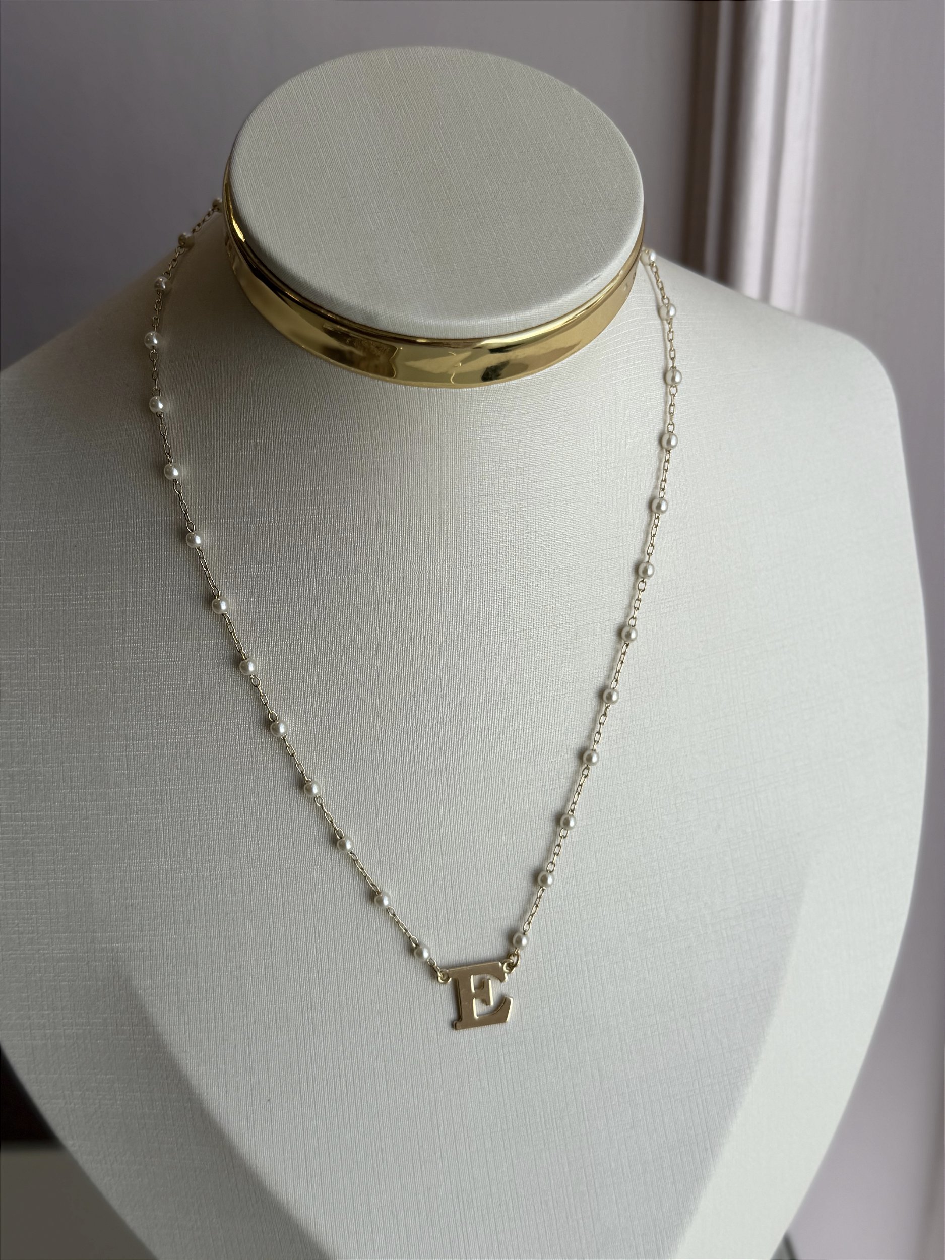 Colar letra E pérola dourado