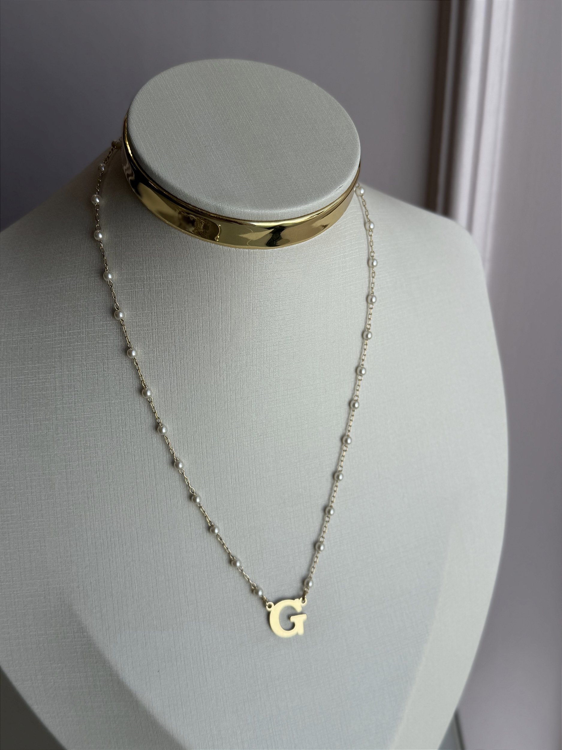 Colar letra G pérola dourado