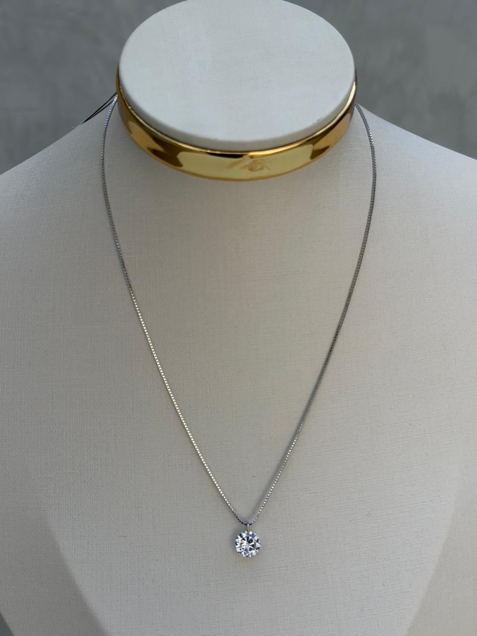 Colar folheado a ródio com pingente de zircônia lapidada em formato redondo, ideal para quem busca um visual minimalista