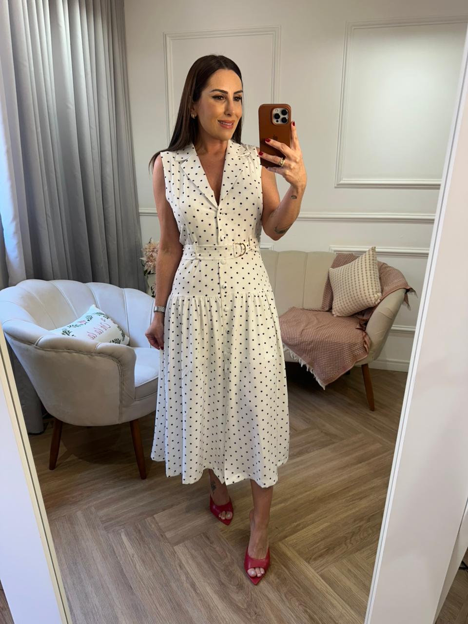 Medidas: 100 cm de busto, cintura alta 77 cm, cintura baixa 85 cm, quadril 106 cm, coxa 57 cm.